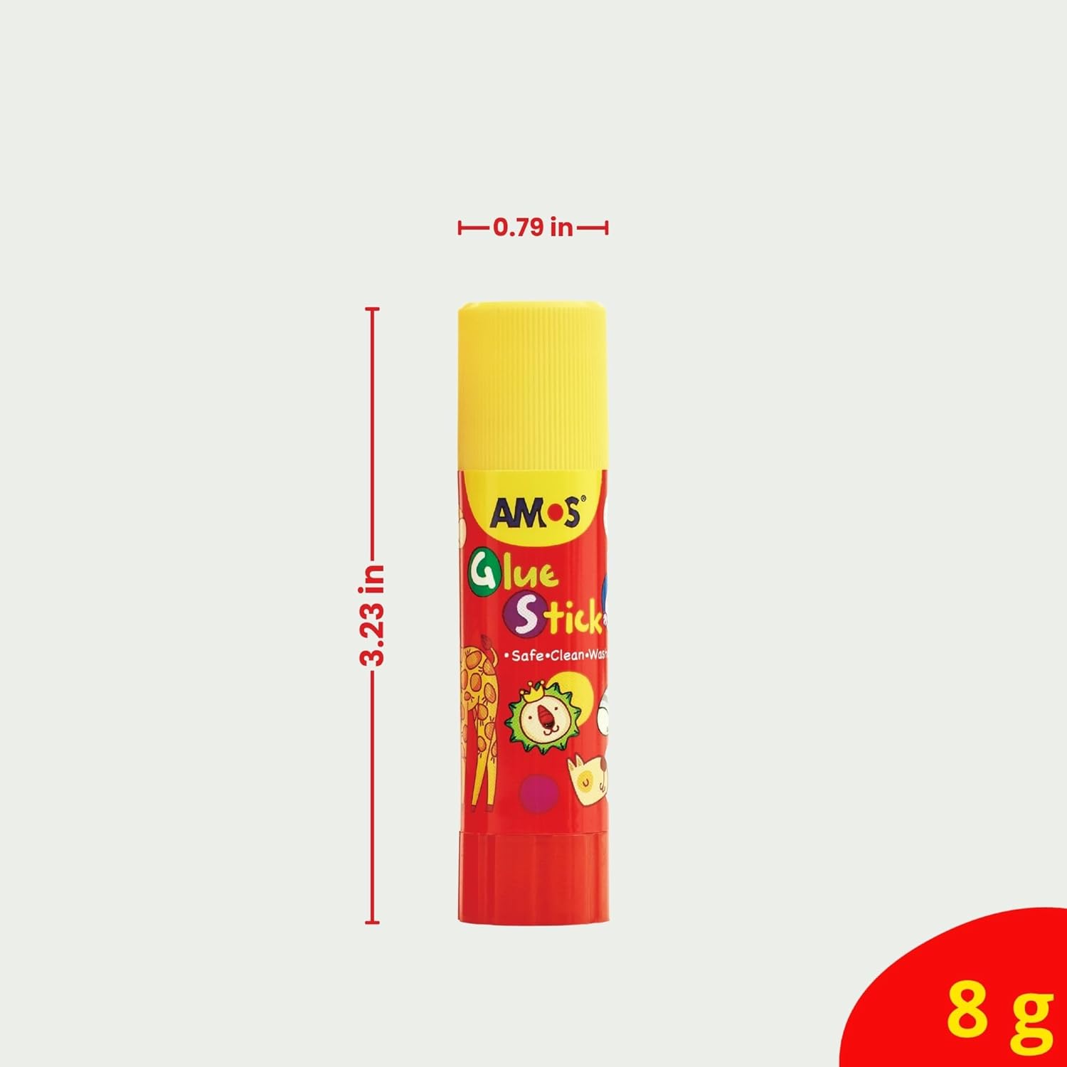 AMOS Glue Sticks — 8 g (0.28 oz), 30 Sticks in Display Box, Kid’s Design for School, Office & Crafts — Washable, Non-Toxic, Acid-Free