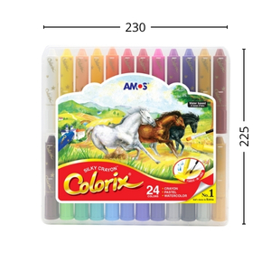 Includes 24 twist-up gel crayons covering a wide spectrum for layering, shading and watercolor effects.