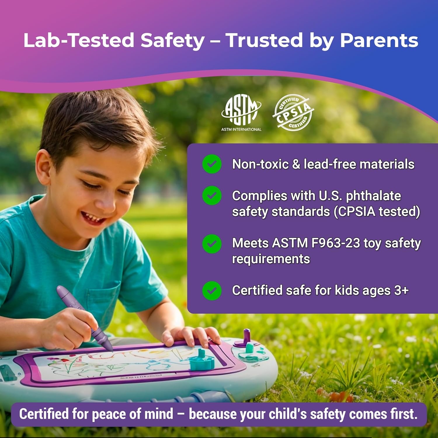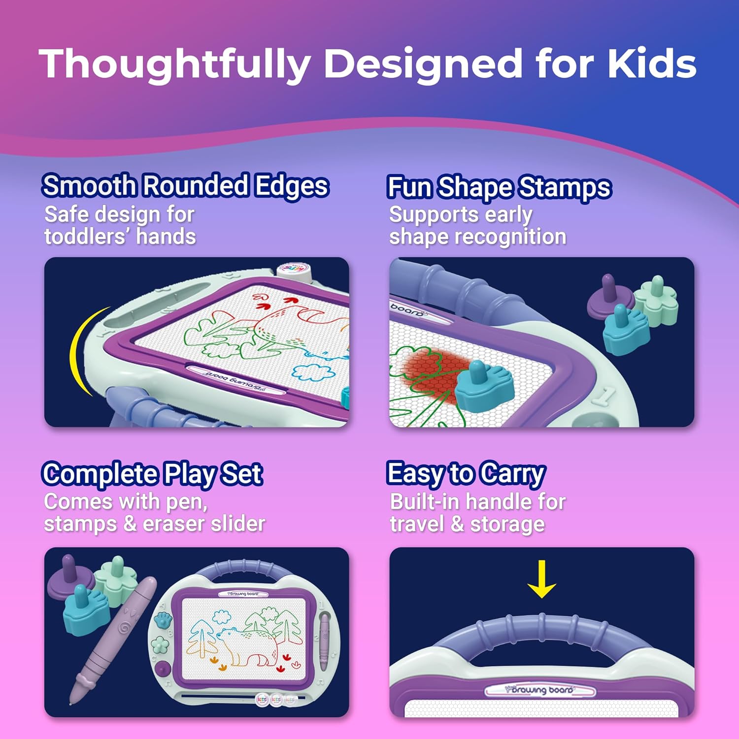 Magnetic Drawing Board for Kids — 2 in 1 Erasable Table & Portable Doodle Pad with Color Zones, Pen & Stamps – Travel Learning Toy, Gift for Boys & Girls Ages 3+